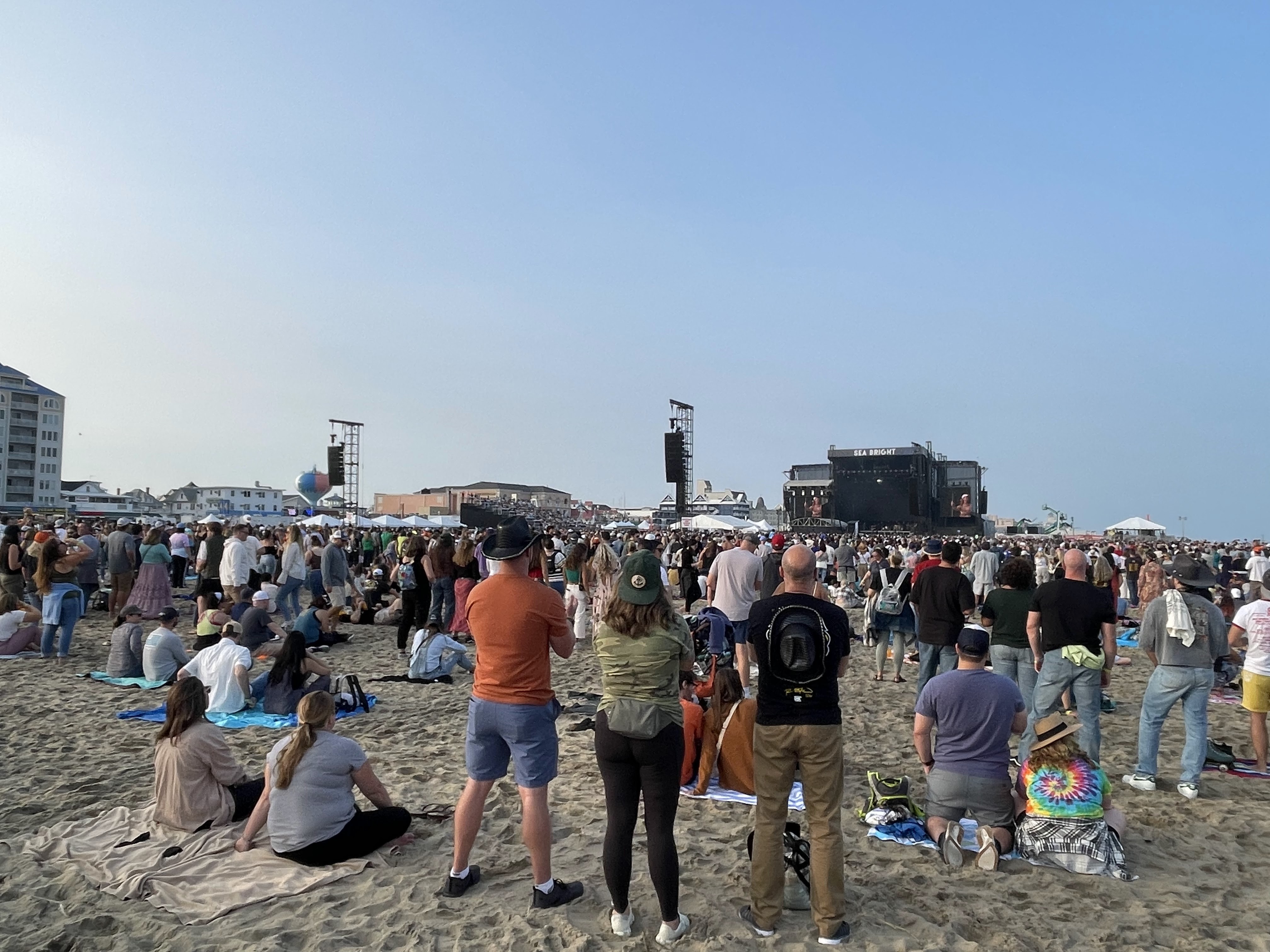 Like most music festivals, multiple acts performed at the same time and the stages needed to be far enough away from each other so the sound wouldn’t overlap. The main stage was called Sea Bright and was located on the beach at the north side of the Jolly Roger amusement pier. The Rockville stage was located at the southernmost point of the island’s inlet – half of the audience was on the beach and half was in the paved parking lot. Next to the Rockville stage was the smaller and tented Carousel stage, fully in the paved parking lot.